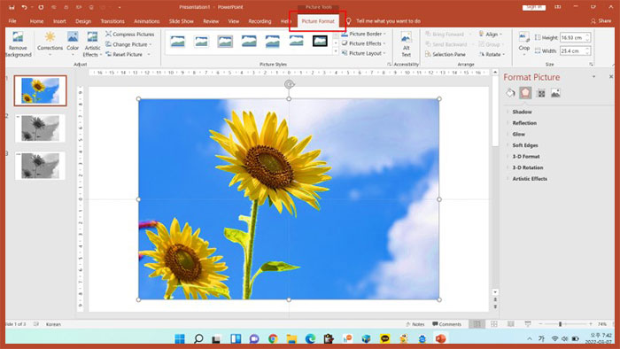 05. 파워포인트 속 이미지나 사진이 흑백으로 변경되었음을 확인할 수 있습니다.