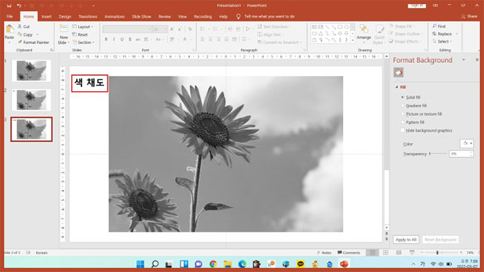 채도값을 변경하여 파워포인트 이미지 흑백 바꾸기