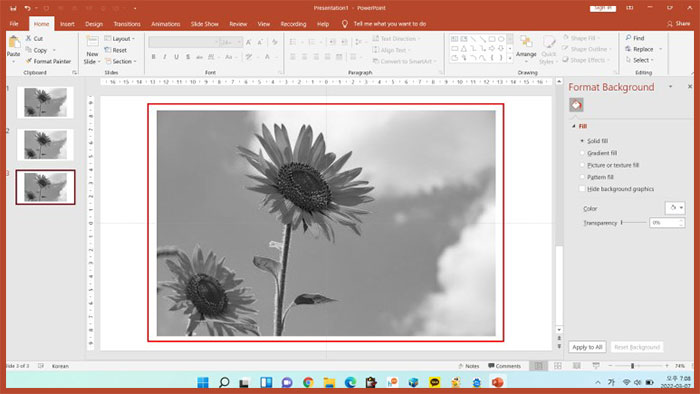 한 방에 파워포인트 속 사진, 이미지 흑백으로 변경
