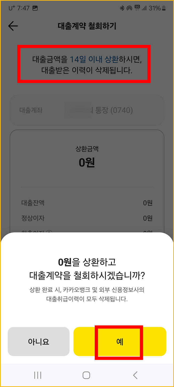 카카오뱅크 비상금대출을 이용할 경우, 14일 이내에 해지를 하지 않고 쭈욱 이용하게 될 경우 여러분들의 신용에 영향을 줍니다. 아무리 카카오가 안전한 금융권이라고 해도 비상금대출을 이용하는 순간부터 여러분들의 신용점수의 변동이 생깁니다. 현대 사회에서 신용이란 보이지 않은 하나의 자산이기 때문에 해당 서비스를 이용하기 앞서서 꼭 써야 하는지에 대해서 고민을 해보시는 걸 권장해드립니다.