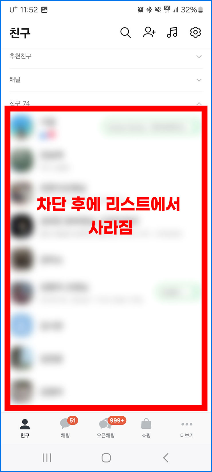 07. 여러분들의 친구 목록에서 방금 차단한 대상이 사라진 것을 확인할 수 있습니다.
