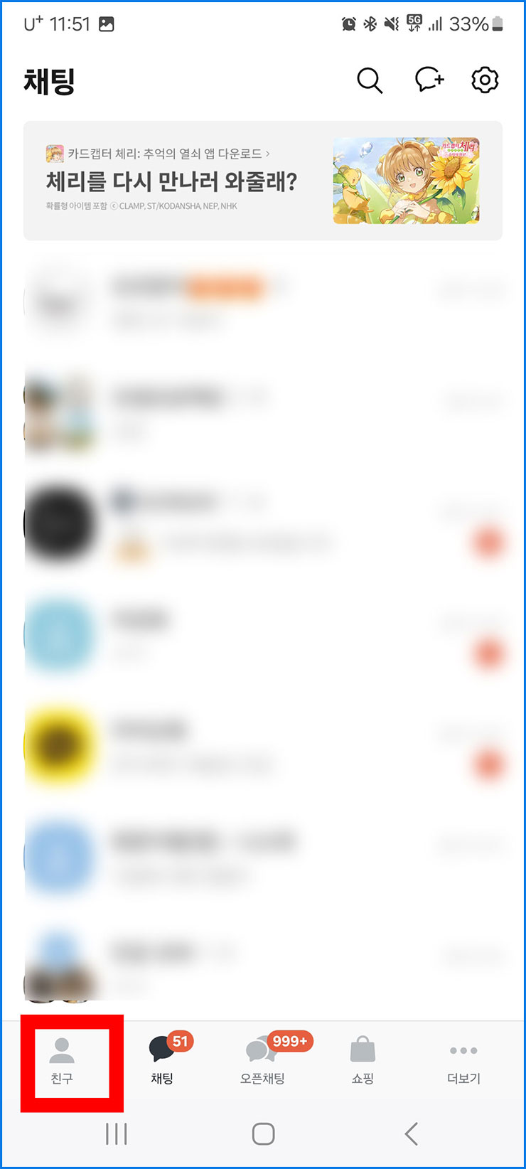02. 그 다음에는 만약에 친구창이 아닐 경우 아래에 있는 <친구> 아이콘을 눌러서 친구창으로 넘어가주세요.