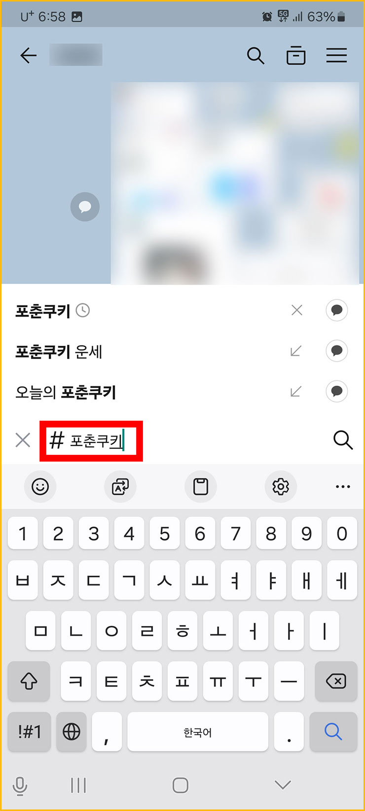 06. 그 다음에는 연관 해시태그 검색어 들 중에서 <포춘쿠키>를 눌러주세요.