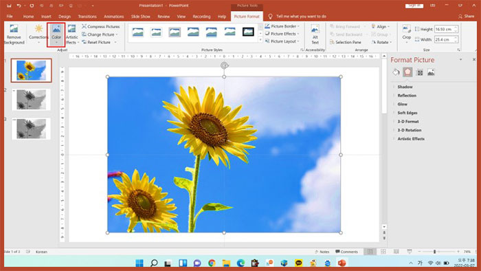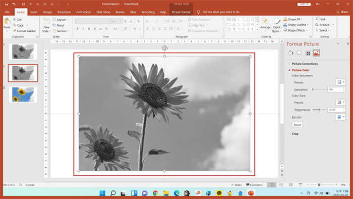 채도값을 변경하여 파워포인트 이미지 흑백 바꾸기