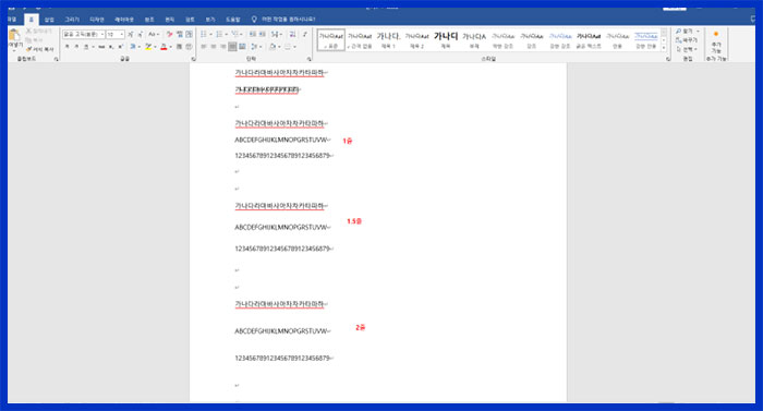 우선 MS 워드 자간(글자 사이에 간격)을 조절하는 법부터 설명해드리겠습니다. 만약에 행간(줄 사이의 간격) 조절을 원하시는 분께서는 조금 아래로 스크롤을 내려주세요.