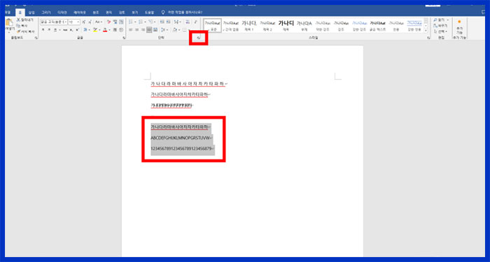 02. 드래그를 한 상태에서 워드 상단에 있는 [글꼴 아이콘]을 선택해주세요. 사진에서 보이는 것처럼 다소 작은 사이즈의 아이콘입니다.